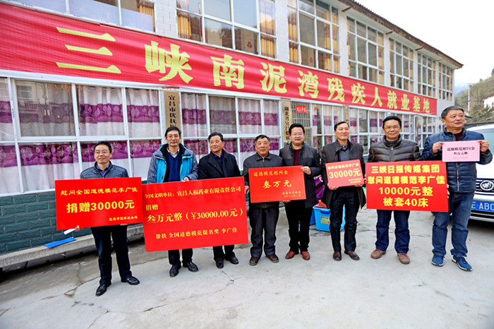2月6日,宜昌市文明辦率全國文明單位走訪慰問第六屆全國道德模范提名獎(jiǎng)獲得者李廣佳。市委宣傳部副部長、市文明辦主任鄒正海受市委常委、市委宣傳部長王國斌委托,為李廣佳及三峽南泥灣殘疾人生活園送去了新春問候和3萬元慰問金。全國文明單位宜昌人福藥業(yè)、市國稅局、市地稅局、農(nóng)行三峽分行和三峽日?qǐng)?bào)傳媒集團(tuán)的相關(guān)負(fù)責(zé)人也參加走訪慰問,共為生活園贈(zèng)送幫扶資金13萬元,被套物資40床。