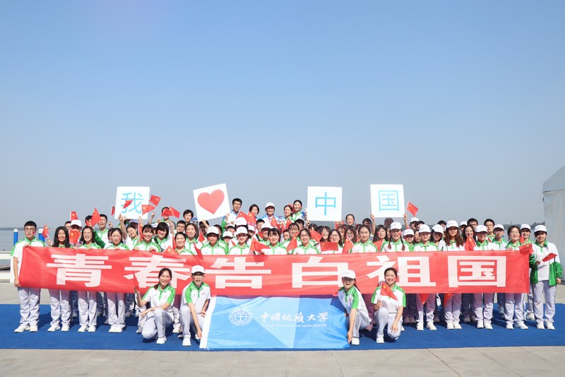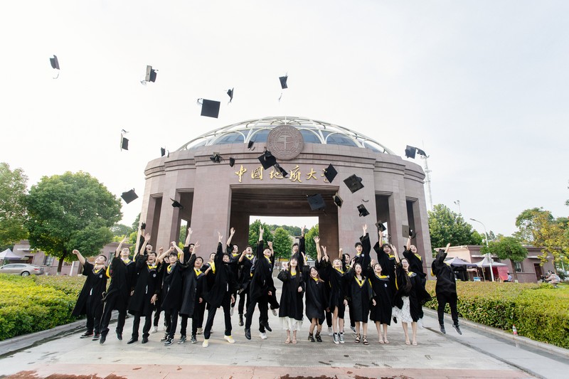 畢業(yè)生在校門前歡呼合影