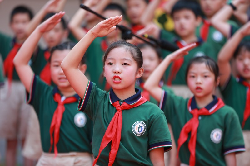 武漢市洪山區(qū)廣埠屯小學(xué)舉行慶祝中華人民共和國成立70周年《禮贊》活動。