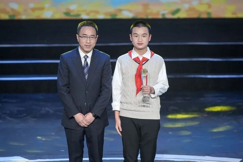 中共湖北省委宣傳部副部長黃學龍為全國“新時代好少年”獲獎者黃煒宸頒獎