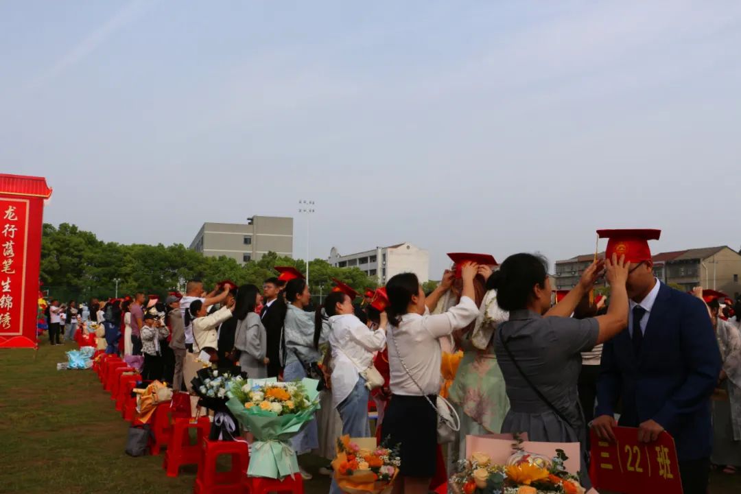 這場以“十八志凌云 ·青春赴山海”為主題的成人禮,儀式感滿滿。行冠禮環節,在場領導、老師和家長們莊嚴地為學生佩戴成人帽、行撥穗禮,祝福同學們在新征程上展翅高飛。同學們用行拜禮回應,為父母和老師獻上了自己成人后的第一次拜謝,感謝父母十八年來的養育和牽掛,感謝老師一路的陪伴和教誨。