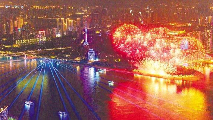 9月14日晚,燈火璀璨、光影交織,長江文化藝術(shù)季開幕式在武漢兩江四岸壯麗上演。(湖北日報(bào)全媒記者 何宇欣 攝)