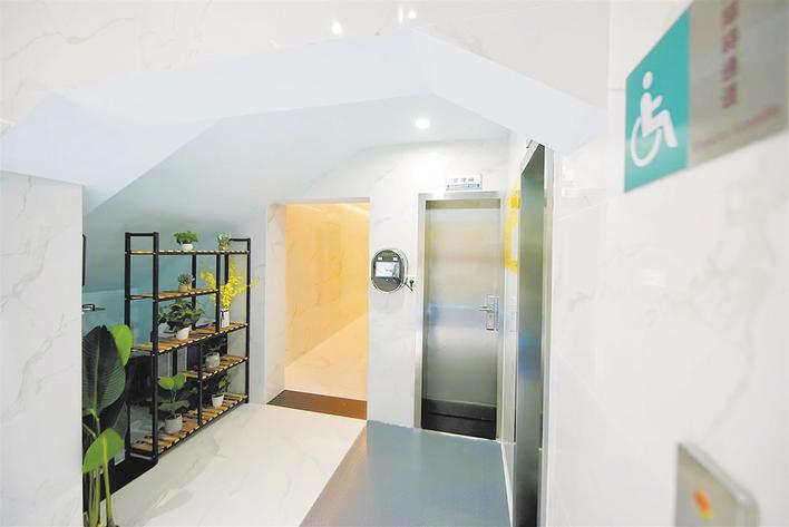 在漢口解放公園路地下公廁內(nèi),記者看到,除了擺設(shè)花卉、綠植、沙發(fā)、裝飾畫,配置音樂場(chǎng)景、室內(nèi)色調(diào)等氛圍外,還通過增設(shè)兒童洗手臺(tái)、溫水盥洗系統(tǒng)、隱藏式水箱、隱藏式垃圾桶等便民設(shè)施,還拓展了免費(fèi)WIFI、手機(jī)免費(fèi)充電、殘疾人綠色電梯通道、書報(bào)架免費(fèi)閱讀、雨傘、廁紙掃碼均免費(fèi)使用等六大功能。