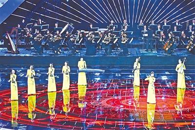 整場節目以交響樂為基調,湖北省交響樂團、湖北編鐘國樂團演奏長江流域經典作品及原創作品,觀眾在旋律引導下,體會長江流域13個省區市的文化、歷史和城市風貌,長江沿線羌藏文化、巴蜀文化、滇黔文化、荊楚文化、湖湘文化、贛皖文化、吳越文化等七大文化,在AI、AR等科技手段并結合光影和裸眼3D等技術加持下,在虛擬長江的舞臺上一一展現。