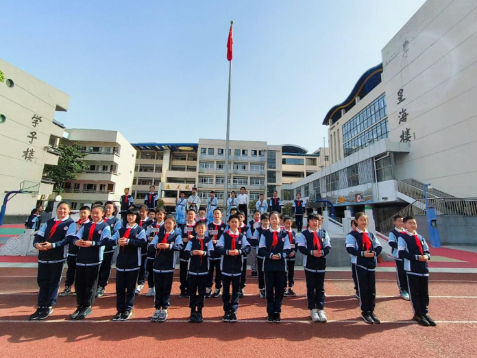 4月14日上午,在湖北省武昌水果湖第二小學的升旗儀式上,五(5)班45名孩子以“古今對話”的創意形式,將春日的芬芳與經典誦讀完美融合,呈現了一場別具一格的特色思政課。