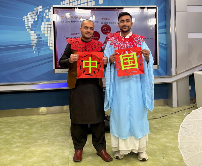 活動現場,留學生們身著云肩刺繡漢服,手持支架拍攝國風大片,刺繡紋樣與剪紙圖騰在光影中交融,傳統與現代元素在歡笑中共舞。