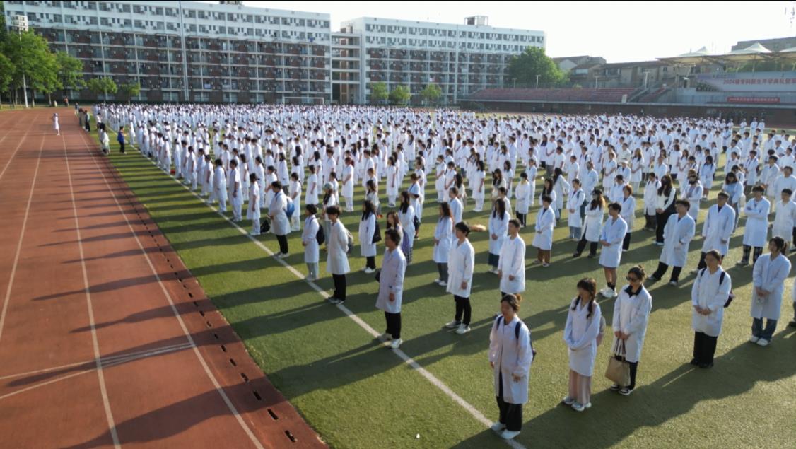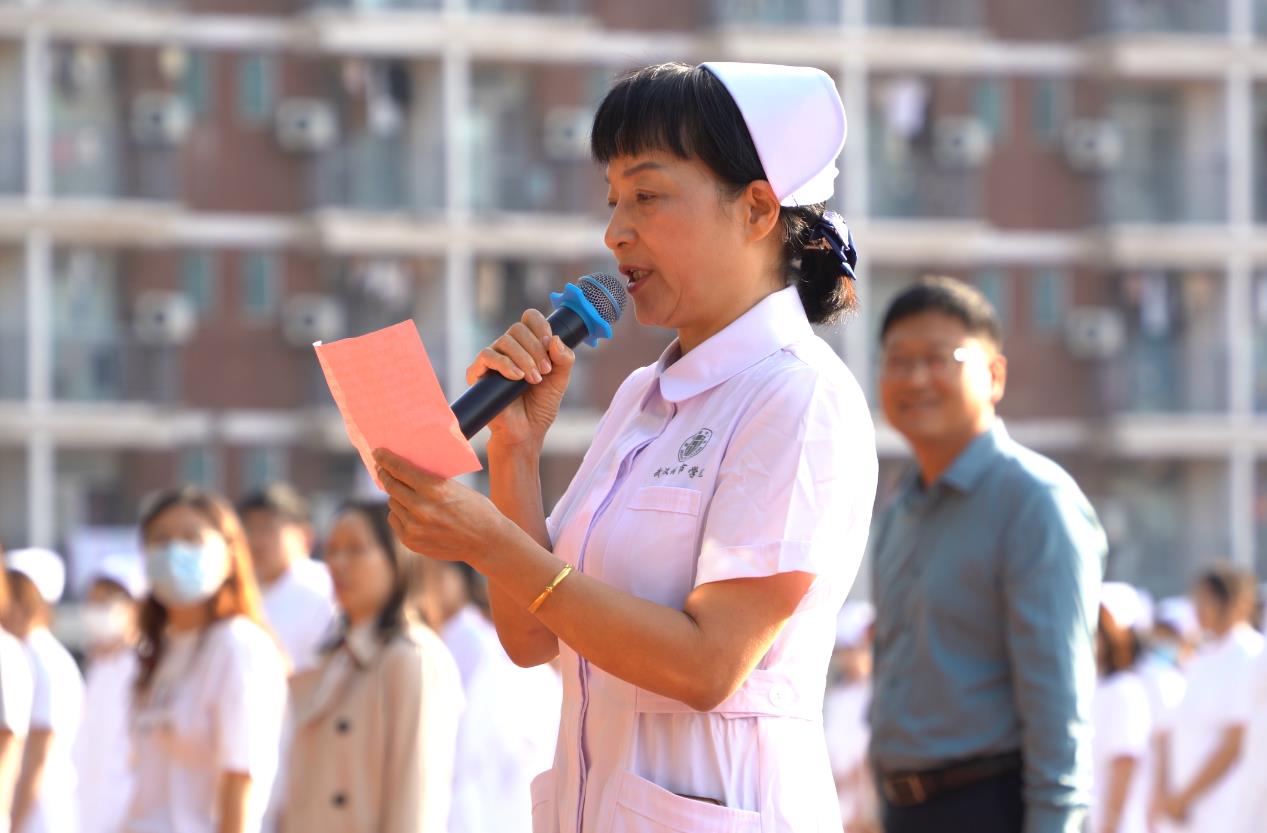 為慶祝第114個(gè)國(guó)際護(hù)士節(jié),5月12日上午7時(shí),武漢城市學(xué)院醫(yī)學(xué)部近兩千名師生,身著護(hù)士服參加“5.12國(guó)際護(hù)士節(jié)”升旗儀式暨集體宣誓大會(huì)。醫(yī)學(xué)部黨總支書記杜征帆主持升旗儀式。學(xué)校副校長(zhǎng)趙光紅出席,全體輔導(dǎo)員參加升旗儀式。