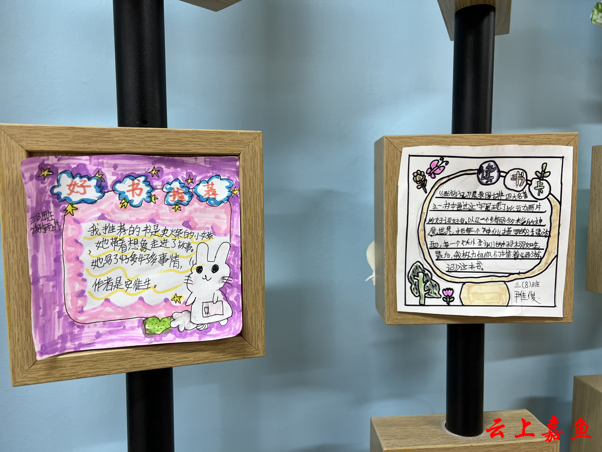 “《夏洛的網(wǎng)》讓我哭濕了三張紙巾!威爾伯和蜘蛛的友誼比草莓冰淇淋還甜!”——歪歪扭扭的字跡旁畫著吐絲的蜘蛛和笑臉小豬。偶爾能看到老師用紅筆批注的愛心:“觀察力+1分!”“這個比喻真棒!”陽光透過窗戶灑在墻面上,那些用熒光筆寫的字句正在閃閃發(fā)亮,仿佛整面墻都在呼吸著童真的想象力。