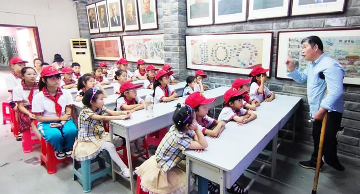 鐘祥市雷鋒精神傳承館公益課堂上,一位拄著拐杖的老師正在講述雷鋒的故事,孩子們個個聚精會神,沉浸其中。